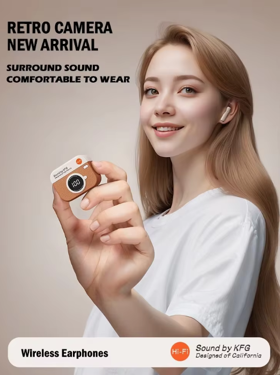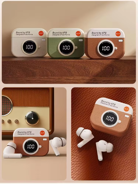X73 Retro Camera Leather Grain Design Wireless Earbuds